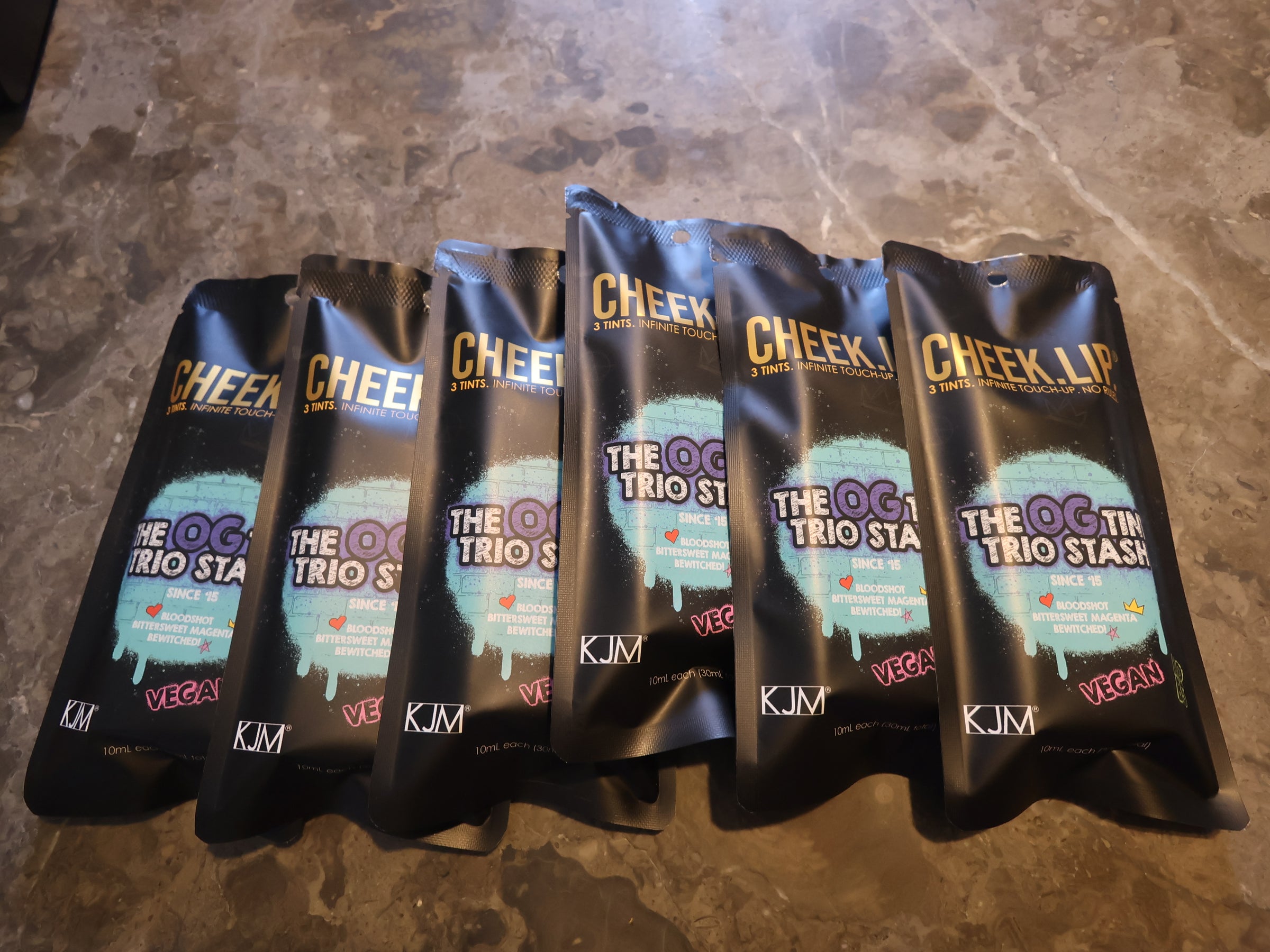 No rules. No BS. The original KJM CHEEK.LIP.® tints that changed the game — now in one stash pouch. Includes 3 shades: Bloodshot, Bittersweet Magenta, and Bewitched. Water-based, multi-use, and lightweight — it’s your no-fuss, flush-of-color bestie.